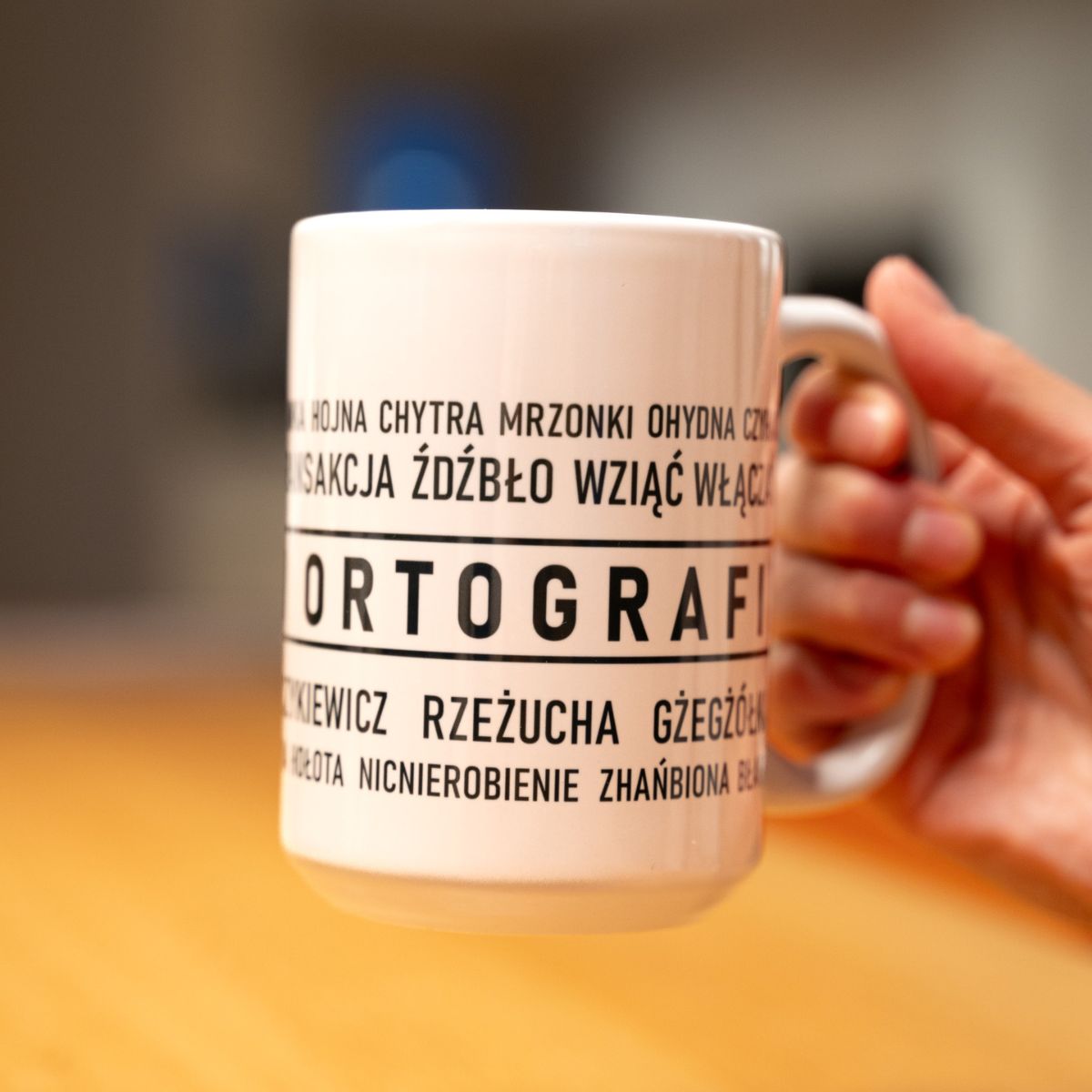 Kubek idealny dla każdej mistrzyni ortografii, która ceni sobie poprawność językową i potrafi rozpoznać wszystkie zawiłości polskiej ortografii. Słowa na kubku to prawdziwa gratka dla miłośniczek języka – zarówno tych, które chcą się podszkolić, jak i tych, które już świetnie radzą sobie z polskimi łamańcami ortograficznymi.